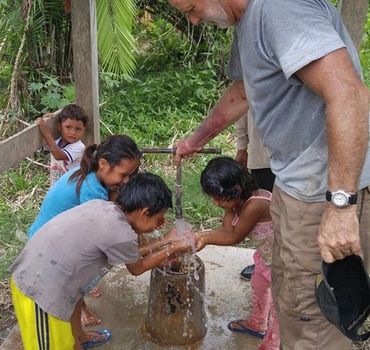 Our Giving Water initiative is helping rural jungle families have fresh water by providing water wells to refresh their body, soul and spirit. Giving Water has opened the door for us to share the good news of God’s love. Clean water means life and health. Drilling water wells gives families a sustainable source of water for cleaning, refreshing and bathing. We have the equipment and the experienced crews to get the job done. One well provides water for 35-40 people, which is 4 or 5 households. Our newly designed rain-water collecting systems give individual families the ability to gather and store precious rain water right in their home. These projects are giving life and health back to children and their families.